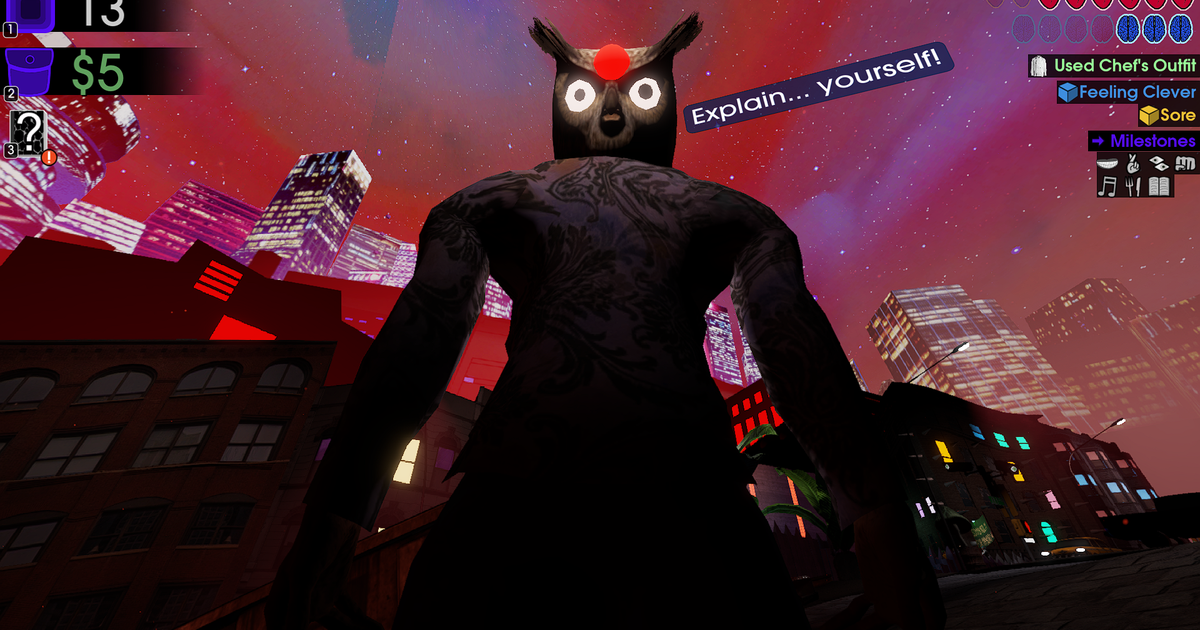 Cosmo D’s latest game Moves of the Diamond Hand is a direct sequel to Betrayal at Club Low, and while it’s still in early access with a developing road map, the vibes so far are transcendent. The story orbits around a big juicy mayoral election, which unfolds across the city as the player attempts to fulfil their own inscrutable goal of joining the enigmatic Circus X; I’m still playing a pizzaiolo, this time with an expanded range of talents (I can busk and do laundry and sew) and a bunch more dice systems to work with. Circus X is seemingly run by Murial, the handler from the previous Off-Peak games, and it’s not explicitly clear whether this establishment has anything to do with The Circus spy agency, which was your previous employer from Club Low days. The first two chapters are out now, but it’ll be a hot minute (probably in the later half of this year) until we see how everything plays out.