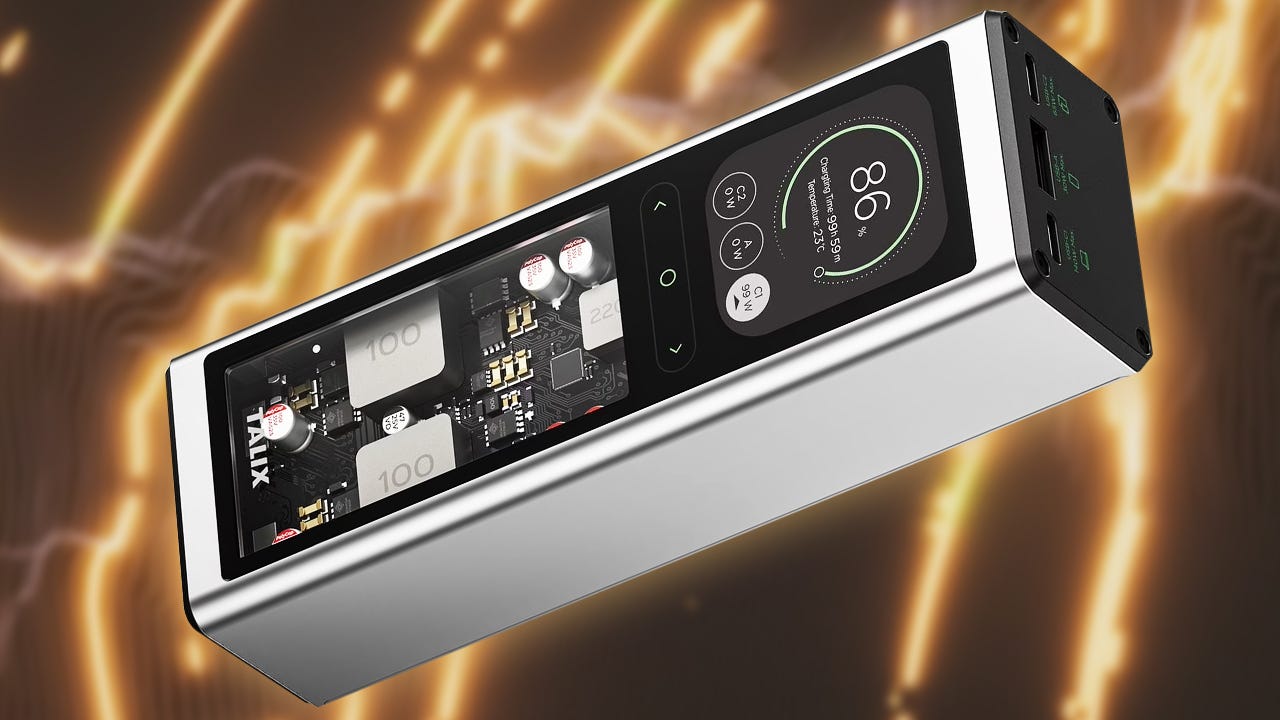 If you haven’t heard of “Talix”, fret not. Talix is a Lenovo backed company and this power bank is identical to the Lenovo Thinkplus Fluxo power bank in pretty much every way except the name. This is a candy bar style power bank with a pretty slick looking window that showcases the internal circuity. There are a total of three outputs: one 140W USB-C port, one 65W USB-C port, and and 30W USB-A port.